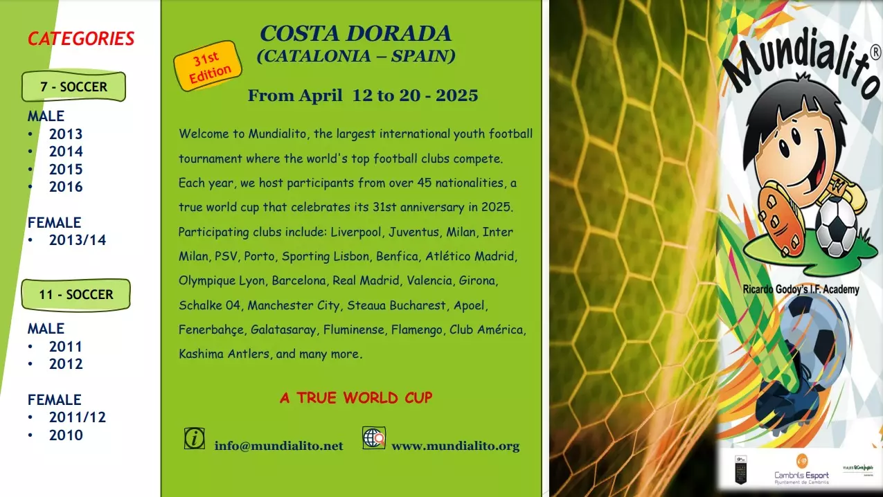 Nous en sommes à la 31ème édition du Mundialito et il est temps de partager avec le monde que plus de 100 000 joueurs, hommes et femmes, ont participé à notre tournoi ; provenant de près de 100 pays sur les 5 continents.